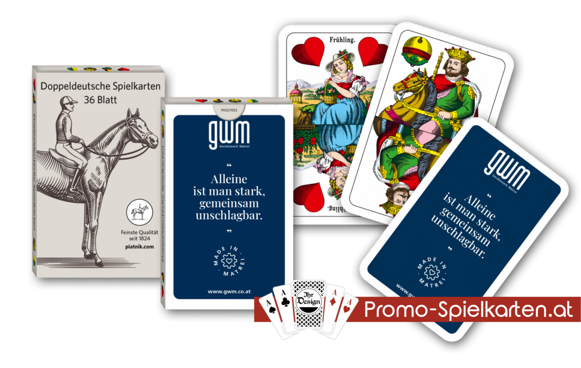Wir sind offizielle Partner der Wiener Spielkartenfabrik Ferd. Piatnik & Söhne im Werbedruck und bieten exklusiv nur originale Spiele an, wie diese auch in den Handel kommen.
